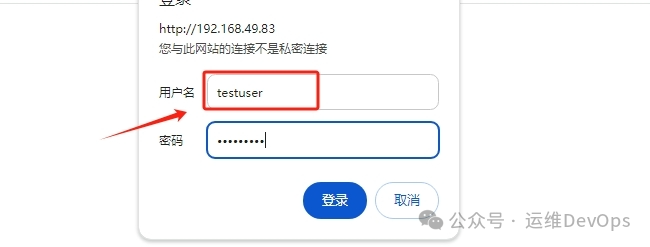 4、再次登录NGINX,提示输入用户名和密码,如图: