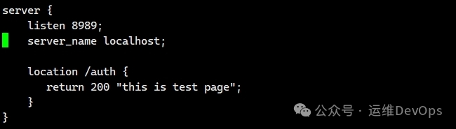 2、编辑auth_8989.conf文件,定义路由返回状态码为200,内容如下: