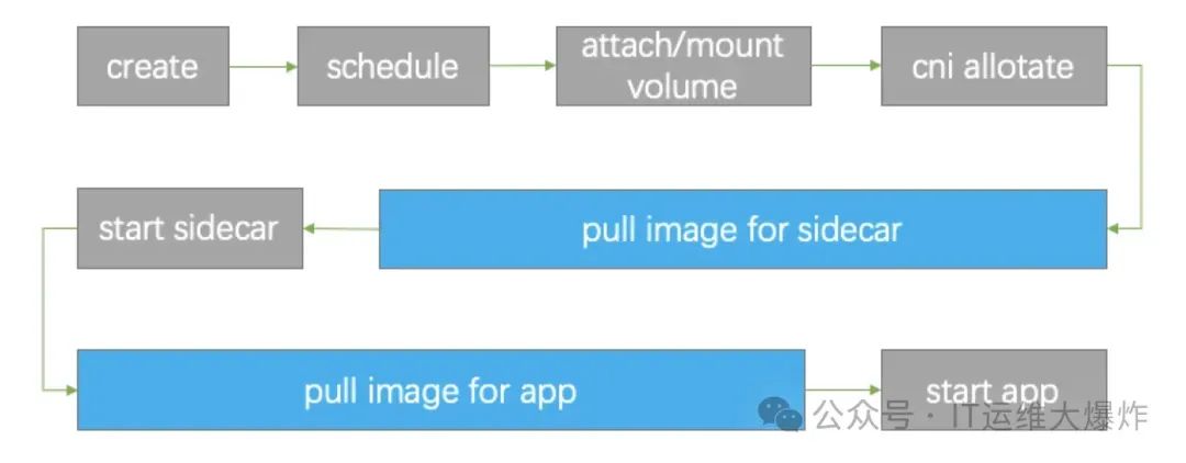 我们过去听到过很多用户对容器化的期待和认识,比如 “极致弹性”、“秒级扩容”、“高效发布” 等等,但结合 Kubernetes 中一个标准的 Pod 创建过程来看,和用户的期望还是有一定差距的(假设 Pod 中包含 sidecar、app 两个容器):
