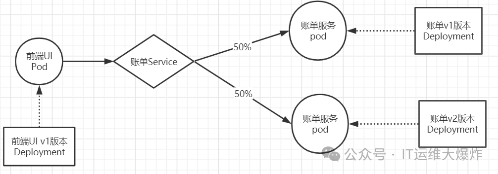 访问规则会按照v1和v2的pod各50%的流量分配