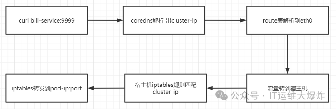 通过上述流程调试,我们可以得知,front-tomcat中访问bill-service:9999,流量是没有用到kube-proxy维护的宿主机中的iptables规则的。