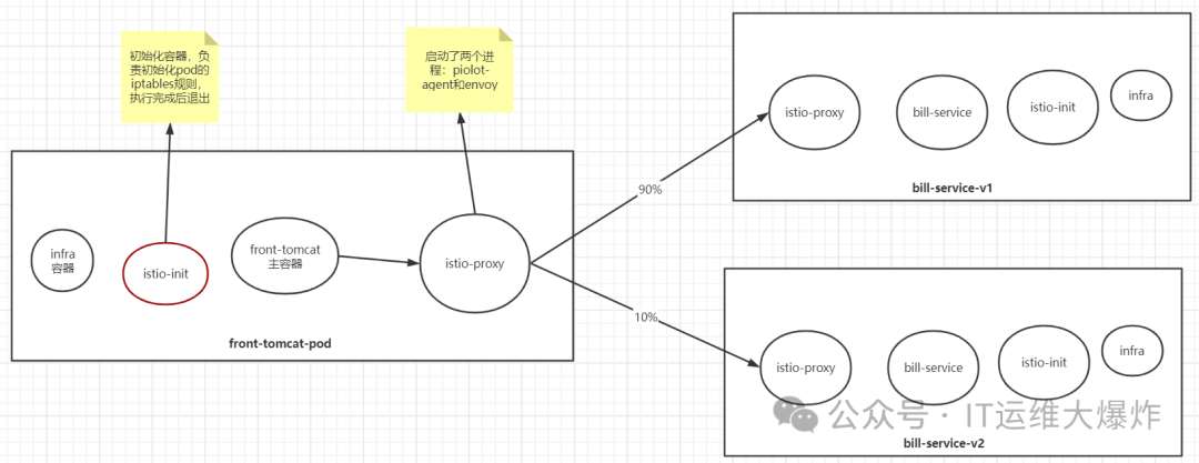 流量到达bill-service-v1的pod后的处理