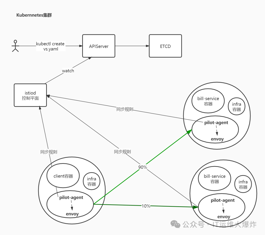 90% -> outbound|9999|v1|bill-service.istio-demo.svc.cluster.local