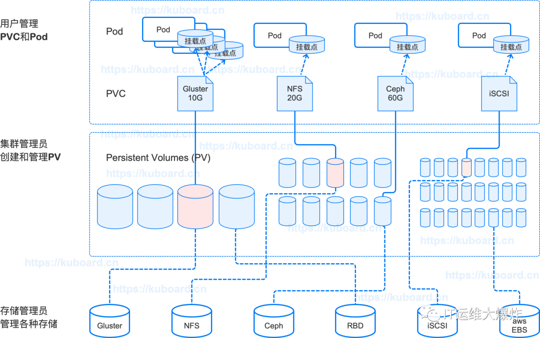 集群管理员实现创建好一系列 PersistentVolume,它们包含了可供集群中应用程序使用的关于实际存储的具体信息。