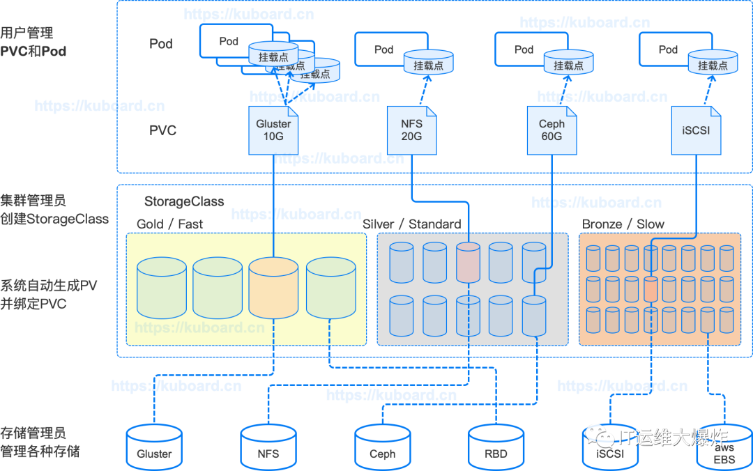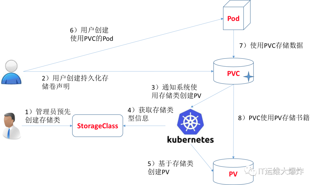 当创建PVC(Persistent Volume Claim)时,可以指定所需的Storage Class,K8s将根据Storage Class的定义自动创建和绑定存储卷。
