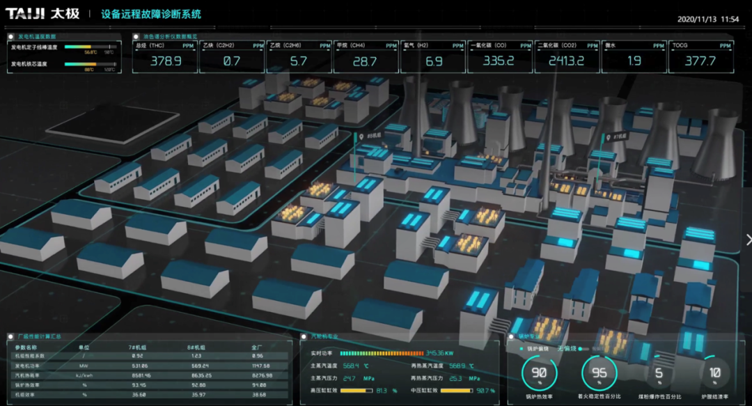 太极股份使用 IoTDB 替换 Apache Druid,构建发电机组的远程分析平台,基于热电厂故障录波器/油色谱分析仪数据,从设备性能、设备健康度等多个维度对传统发电机组各设备进行分析。目前,IoTDB 已管理 4 家电厂 11 个发电机组的时序数据,对风机锅炉设备、发电机、变电设备等主辅机超 80000 关键测点进行监控,采集频次最高达纳秒级。