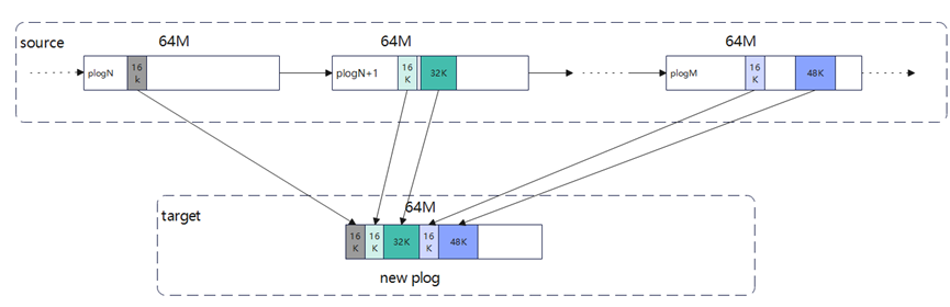 如图1所示,我们将分散在多个plog上的表数据下载下来,再合并成一个新plog,并在log directory中完成位置更新。