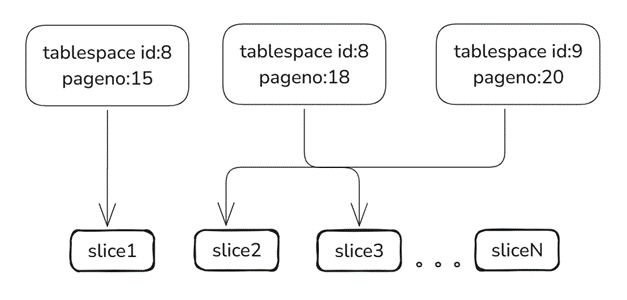 TaurusDB在存储侧的管理单元被称为slice,在计算侧由SliceManager模块管理从[tablespace id, pageno]到slice的映射关系,每个slice在逻辑上被分配10G存储空间。