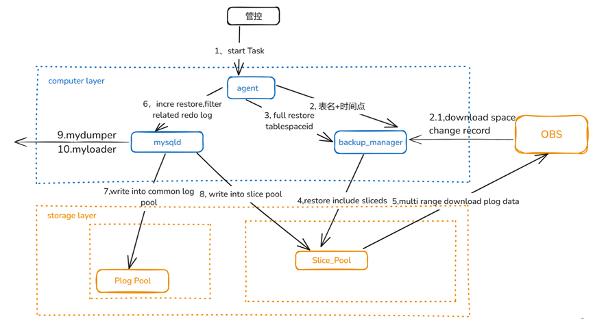 全量恢复会根据表tablespace id获取要恢复的slice列表,下发恢复任务到存储侧,恢复指定plog;