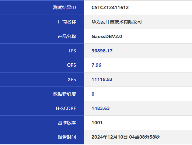 近日,华为云数据库GaussDB以最高成绩顺利完成HyBench基准测试。在1000X数据量场景下,GaussDB H-Score评分为:1483.63,为历史最高成绩的3.8倍。