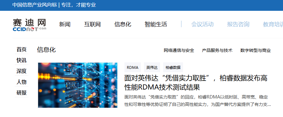 日前,英伟达被中国反垄断调查及其回应引发热议,赛迪网、CSDN、51CTO等科技媒体聚焦柏睿数据高性能RDMA技术,相关报道如下: