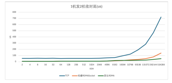 总体来说,使⽤柏睿 RDMA Socket 替代 TCP 能够将时延显著降低.这一优势在复杂的数据处理场景中尤为重要,能够显著提升系统的响应速度和用户体验。