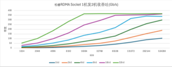 柏睿RDMA Socket在发送较小数据包时也能保持较高的带宽利用率。使用柏睿 RDMA Socket 可以大大提升网络响应速度和带宽传送能力。这对于需要频繁传输小数据包的应用场景来说具有重要意义。