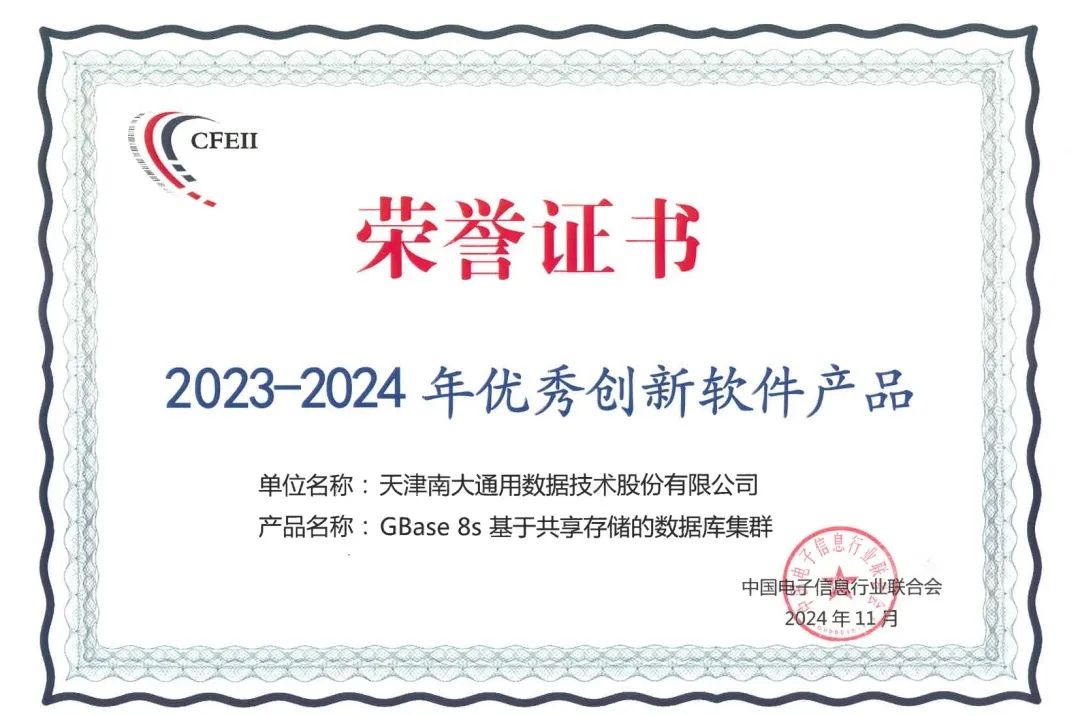 大会期间,重磅发布“2023—2024年度优秀创新软件产品推广目录”“2024年电子信息行业质量提升典型案例”等系列成果,南大通用GBase 8s数据库荣耀入选优秀创新软件产品推广目录。