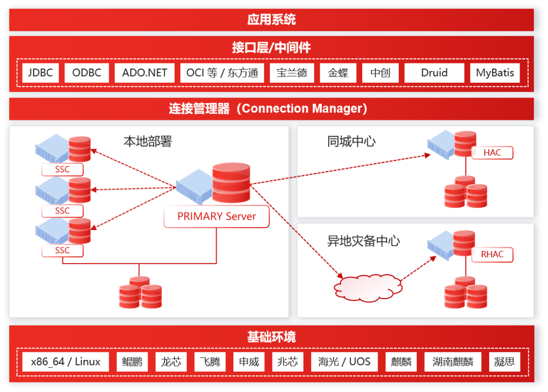 其适用于 OLTP 应用场景,包括金融、电信行业的关键核心业务系统,安全、党政、国防等高安全要求的信息系统,以及大型企业的经营类、管理类信息系统,能够在绝大多数场景中实现对国际主流数据库及共享存储集群的国产化替换。