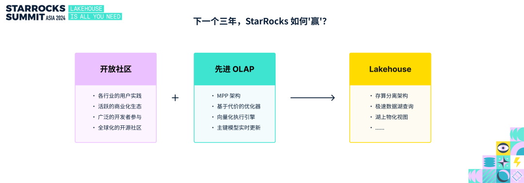 一切过往,皆为序章。StarRocks 作为一个已经发展三年的开源项目,在这个关键时间节点,我们需要思考一个重要的问题:未来三年,StarRocks 如何在日新月异的数据技术浪潮中保持活力?回顾过去三年,如果说 StarRocks 社区还算是取得一些成绩,我认为主要得益于两个关键点:
