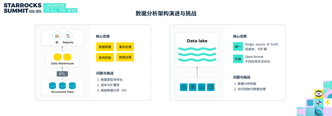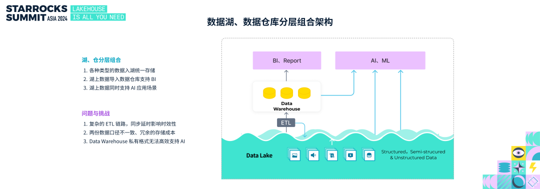 - 高级数据分析支持:新兴 AI 应用难以高效访问数据仓库中的数据。