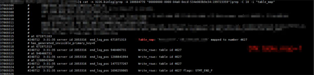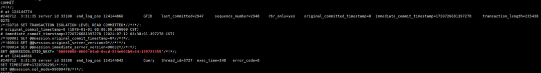 9379074 #240712 3:31:35 server id 33100 end_log_pos 124144942 Query thread_id=3727 exec_time=348 error_code=09379075 SET TIMESTAMP=1720726295/*!*/;9379076 SET @@session.sql_mode=99090478/*!*/;9379077 BEGIN9379078 /*!*/;9379079 # at 1241449429379080 #240712 3:31:35 server id 33100 end_log_pos 478732811 Rows_query9379081 # BINLOG '9379082 # FzOQZhPEVB8AjAAAAIIOGyYAAGsFAAAAAAEACWJvc3NfYWNjdAAQaWRjX3JhdGVfZGxfdF8wNQAa...