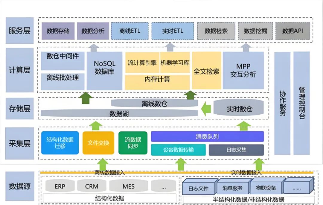 结构化数据存储:数据仓库主要处理高度结构化的数据,通过ETL(Extract, Transform, Load)流程,将来自不同源的数据进行清洗和转换后存入仓库中。
