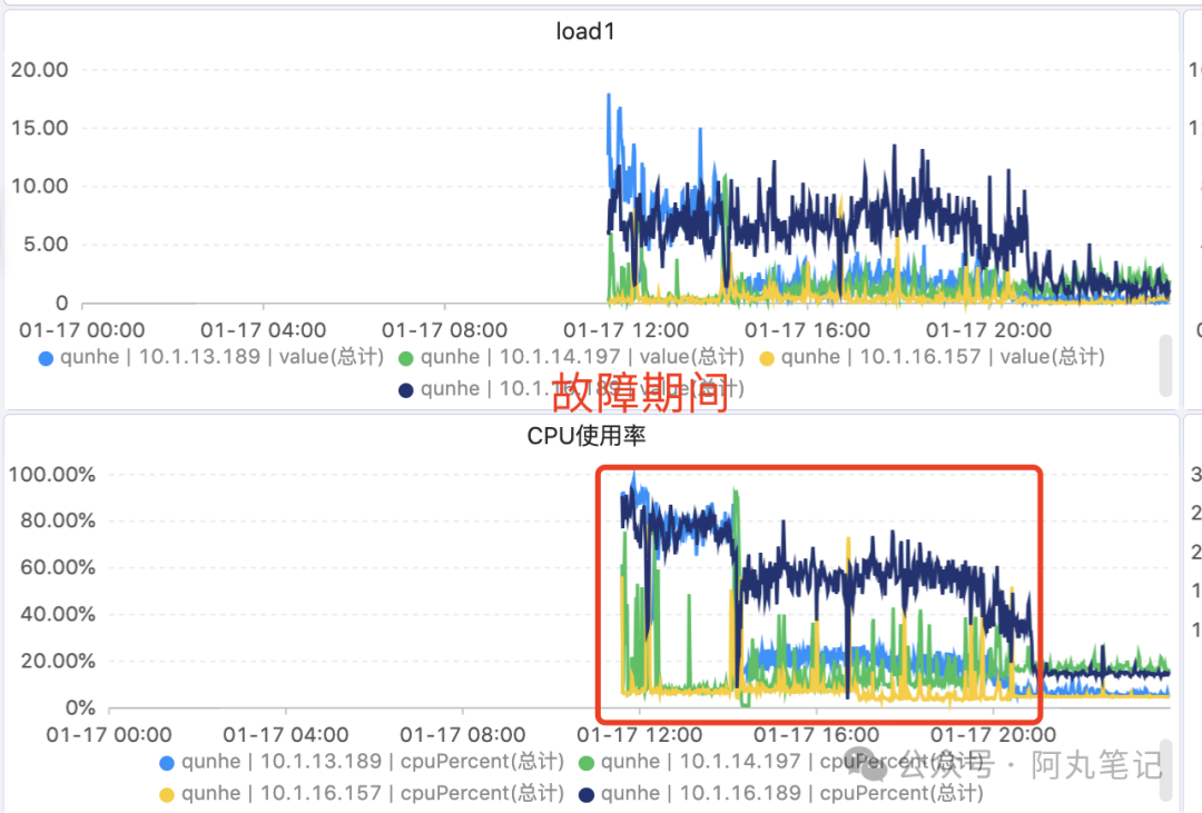 集群gc次数不多,但是耗时高。(原本监控看板异常数据缺失,所以少了前面一段)
