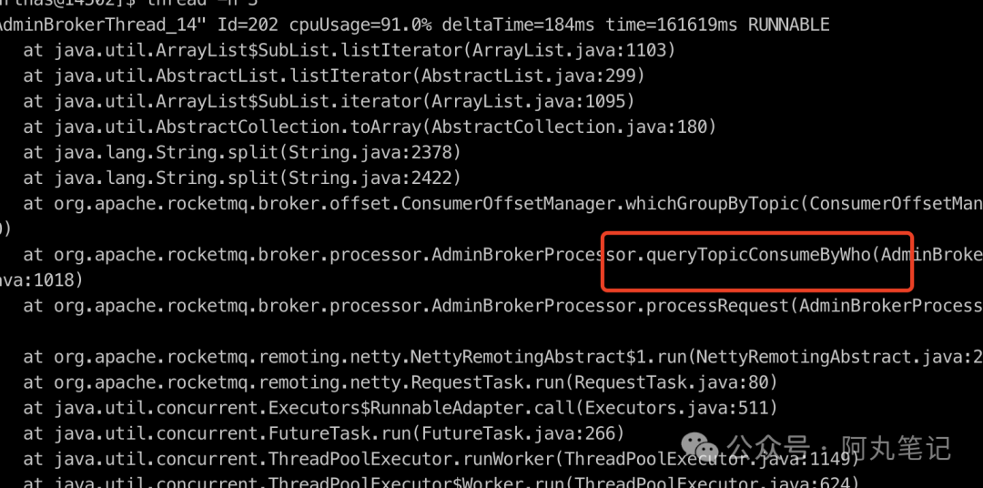1)一个线程在执行AdminBrokerProcessor.queryTopicConsumerByWho()