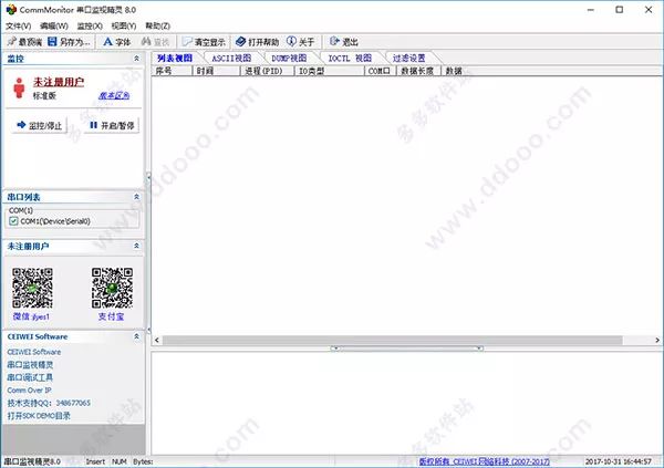 这是一个收费软件,可以免费试用15天,软件功能很强大。它不仅可以监控串口,还能监控USB,网口。