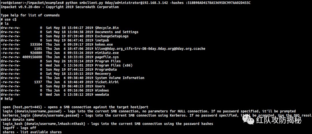可以看到以上的绝大部分操作都是通过hash传递 [ ntlm认证的大BUG ] 的方式进行的,这在实战中其实是非常实用的,尤其当你拿到目标管理员的ntlm hash死活跑不出来的时候,利用这些工具,可以快速的帮你完成某些特定操作,但由于工具实在已被滥用的太多,现如今各种杀毒软件也是杀的不行,所以,如果真的有必要,最好在使用之前先自行进行免杀处理,另外,由于跨平台,实战中非常灵活,其实,这些都只是事例程序,说白点就是个demo,impacket真正的精髓还在于充分搞透各种协议的详细原作细节之后基于此的一系列深度二次开发,作为简单科普,暂时就先说到这里了,弟兄们有任何问题,欢迎及时反馈