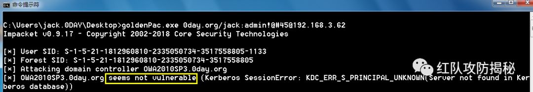 # goldenPac.exe 0day.org/jack:admin!@#45@192.168.3.62 同上,目标确实存在漏洞,但该工具却无法识别
