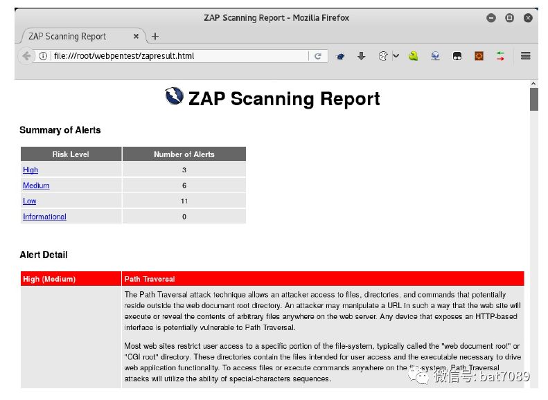 6.扫描完成后,我们可以在“警报”选项卡中查看结果,如下面的屏幕截图所示: