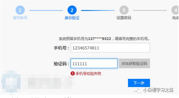 这步我们任意输入手机号,验证码