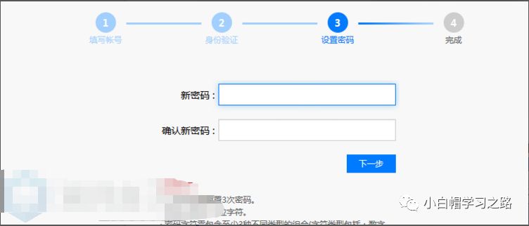成功的进入了第三步:设置密码
