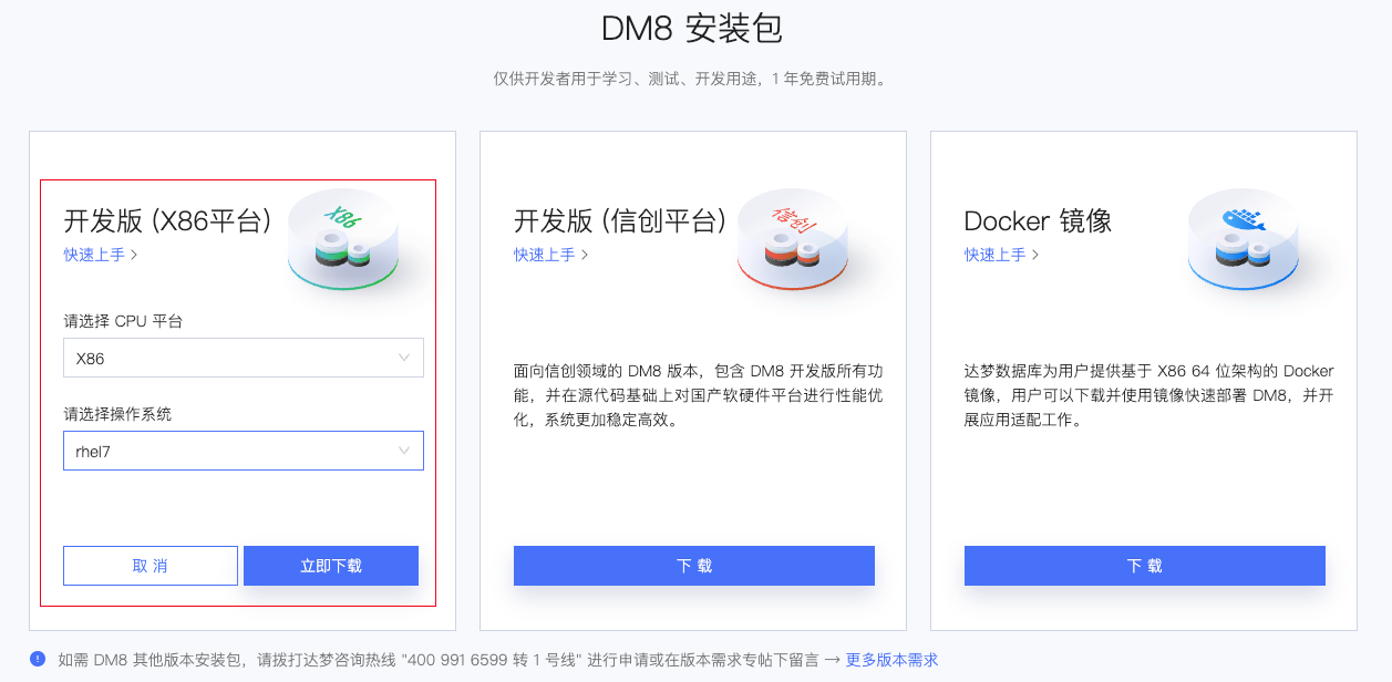 DM8 安装包下载地址:https://eco.dameng.com/download/