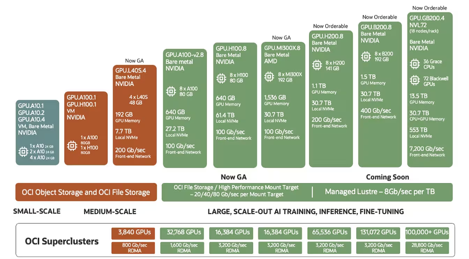 ·OCI 可帮助用户在 OCI 分布式云中的任何地方更快地运行苛刻的 AI 工作负载,包括生成 AI、计算机视觉和预测分析。使用 OCI 超级集群可扩展至 32,768 个 GPU。