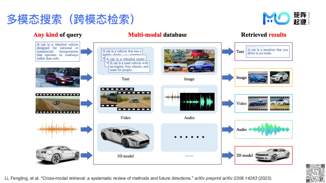 我们重点聚焦于多模态搜索领域,突破文本限制,实现文本、图片、视频、音频等多种格式的交叉检索。