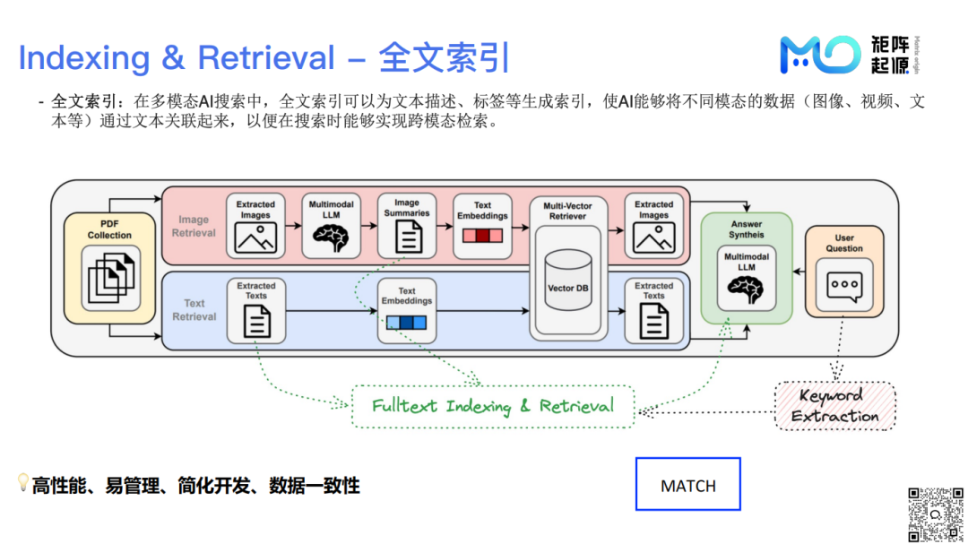 针对短词短句,提供了全文索引,可以为文本描述、标签等生成索引,使AI能够将不同模态数据通过文本关联起来,从而实现跨模态检索。