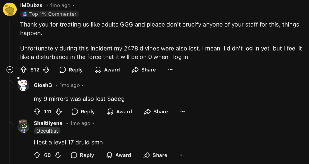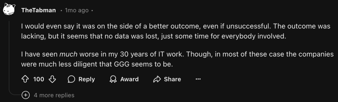 表示理解,这些工作确实是不好做的,GGG 已经处理得很好、对自己要求很高、很真诚了。希望他们别因为这事对自己太苛刻。