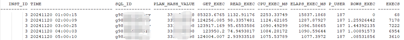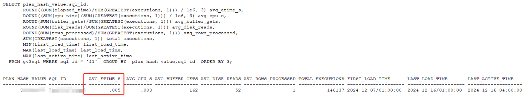 通过awr捕获到某条sql存在性能问题,该语句平均执行时间 1.25s 但是执行频率高(最多每小时7000次左右)。