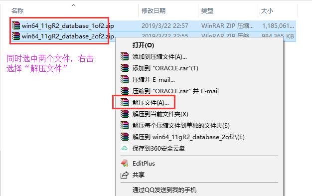 1、解压文件,将两个压缩文件同时解压到同一个目录。如下图所示