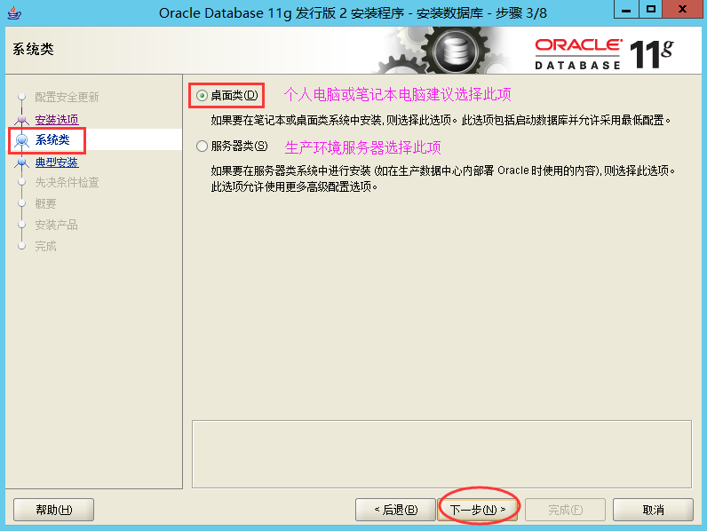 6、系统类配置,可根据需求选择。这里选择“桌面类”安装。