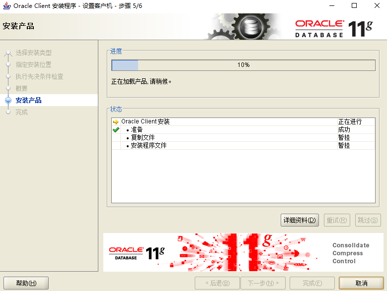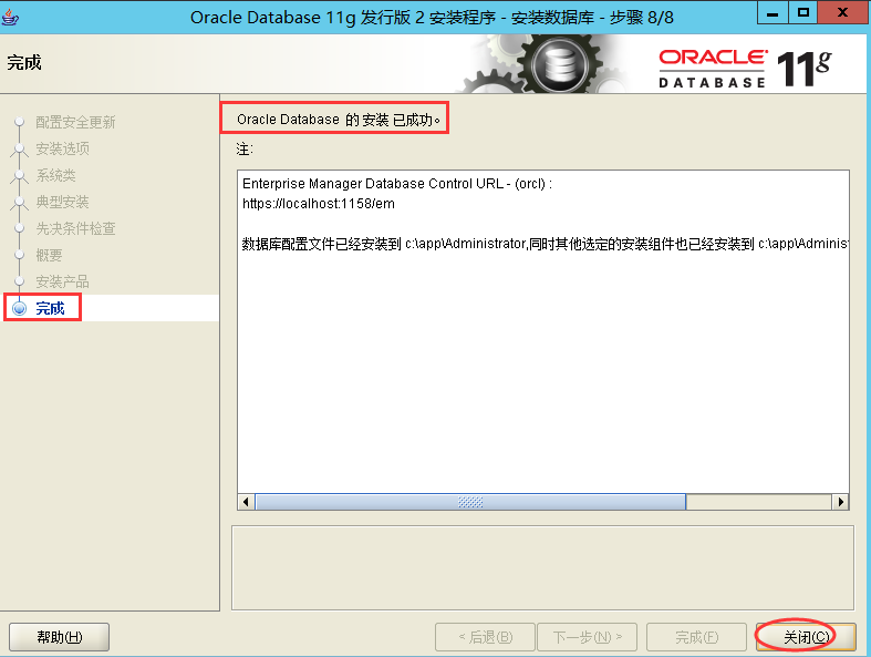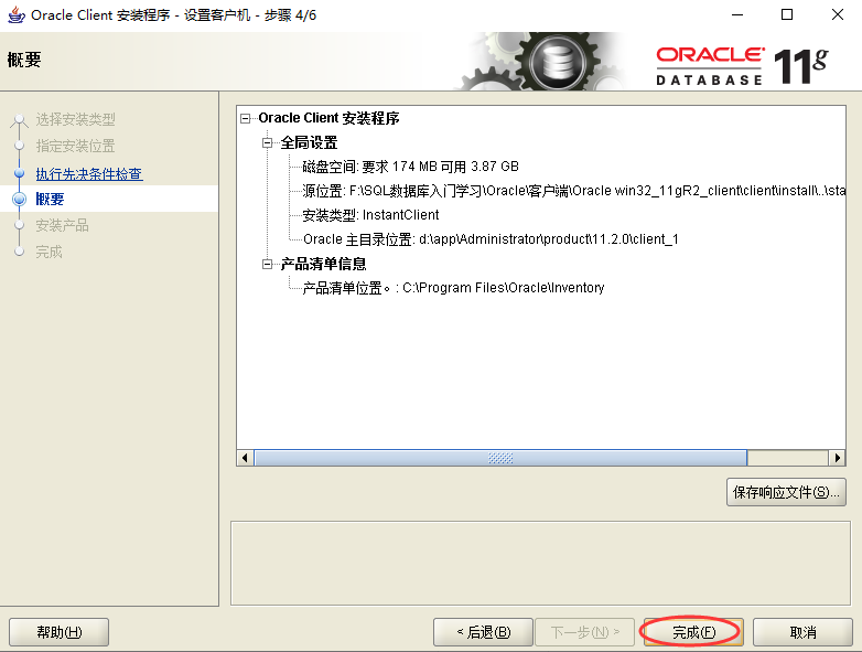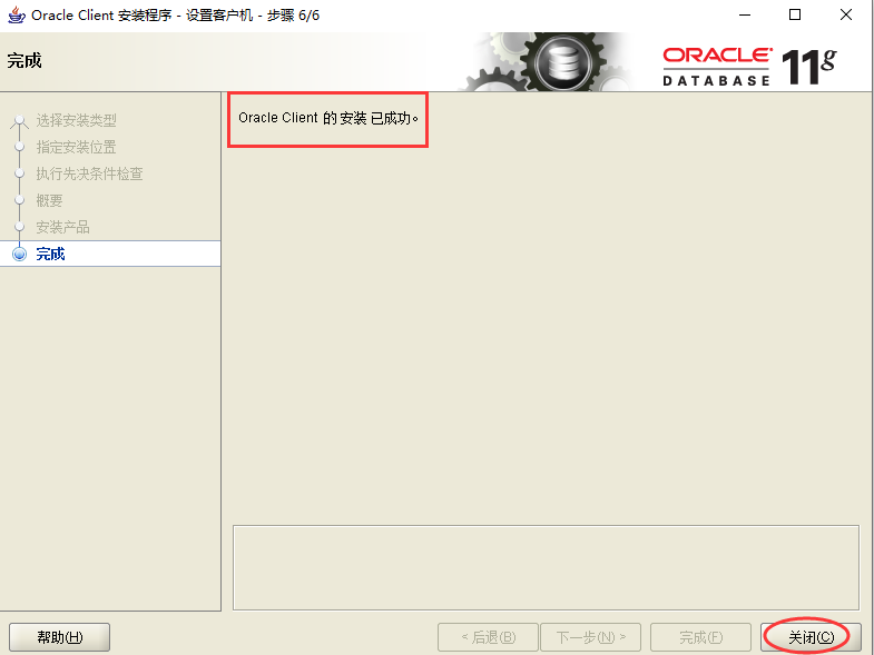 6、到此oracle客户端安装完成。安装完成后重启电脑生效。