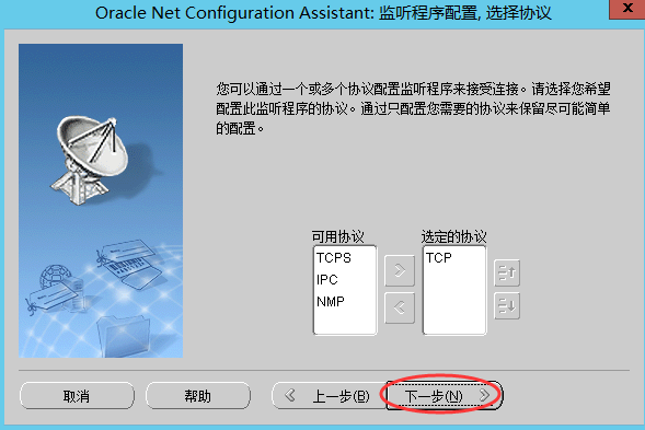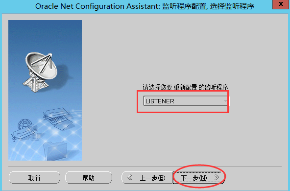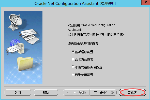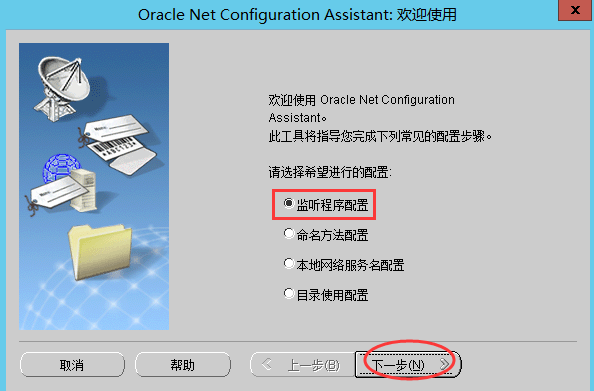 9、打开Net configuration Assistant,选择“监听程序配置”,点“下一步”。