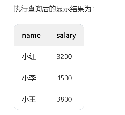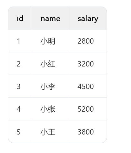 分析:假设我们有一个名为“employees”的员工表,其中包含“name”(姓名)和“salary”(工资)两个字段。表数据如下: