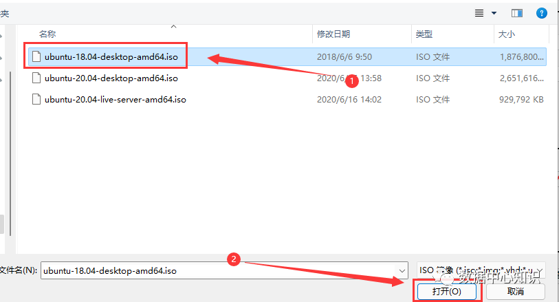 点击下方选择按钮,并选择本次安装系统文件Ubuntu 18.04 后打开