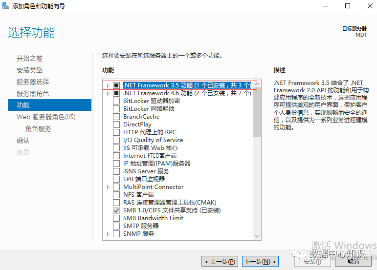 添加 .NET Framework 3.5功能:
