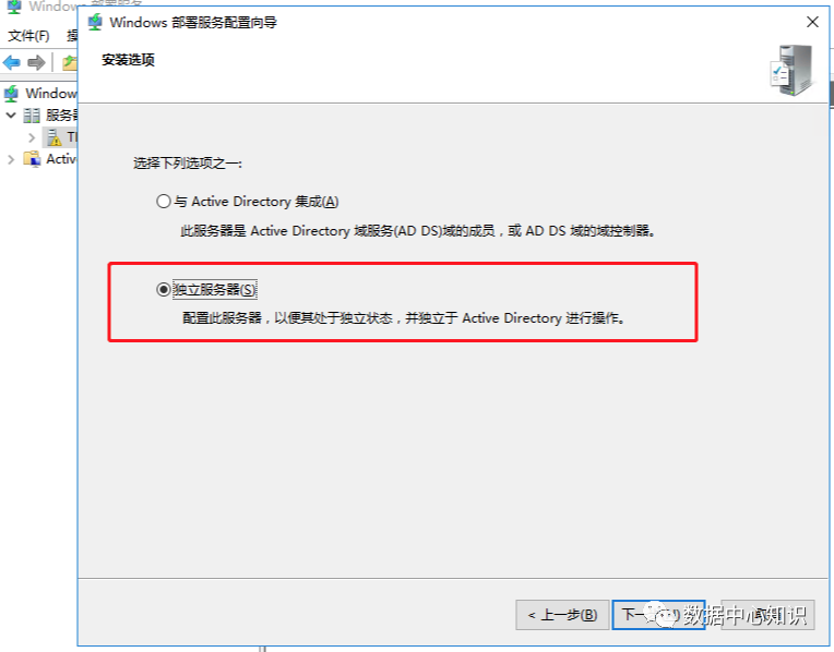 从 Windows Server 2012 开始,Windows 部署服务可以在独立服务器模式下安装。该操作会消除对 Active Directory 的依赖。但是需要使用 DHCP、DNS 和充足权限才能安装和配置 Windows 部署服务。这种情况下,使用本地存储可保留预安排设备的相关信息。