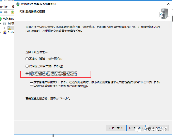 PXE服务器初始设置选择“响应所有客户端计算机(已知和未知)