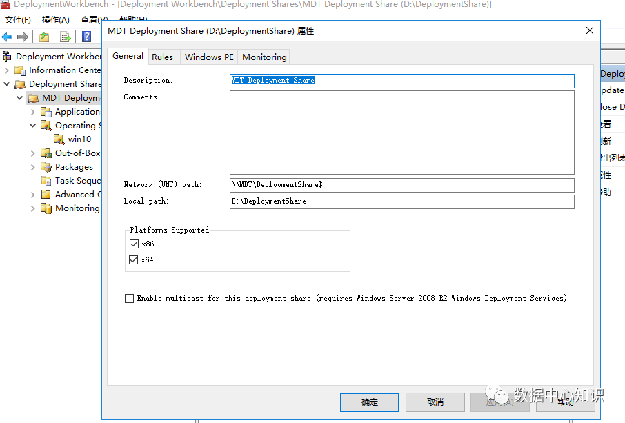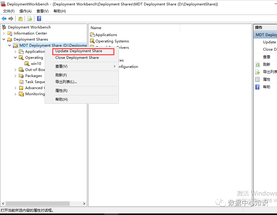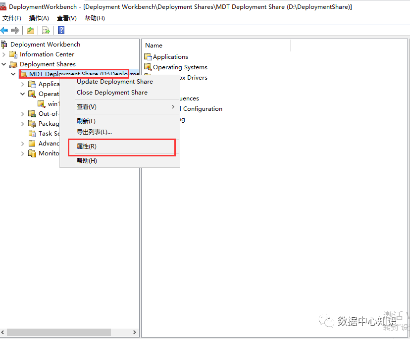 配置启动镜像,选择“MDT Deployment Share”右键属性:
