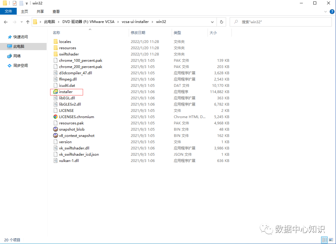进到\vcsa-ui-installer\win32的目录。就可以看见安装的程序,双击开始安装