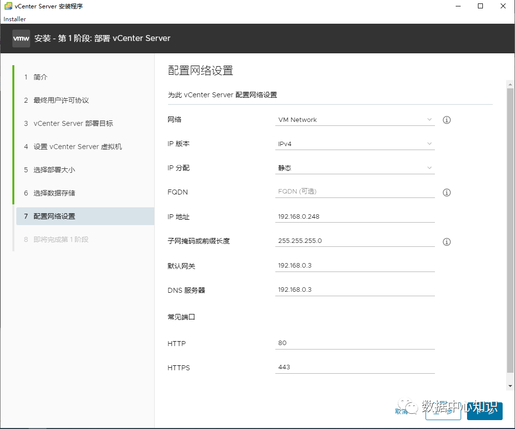给这台新建的服务器设置一个IP,填写好网关,DNS直接下一步