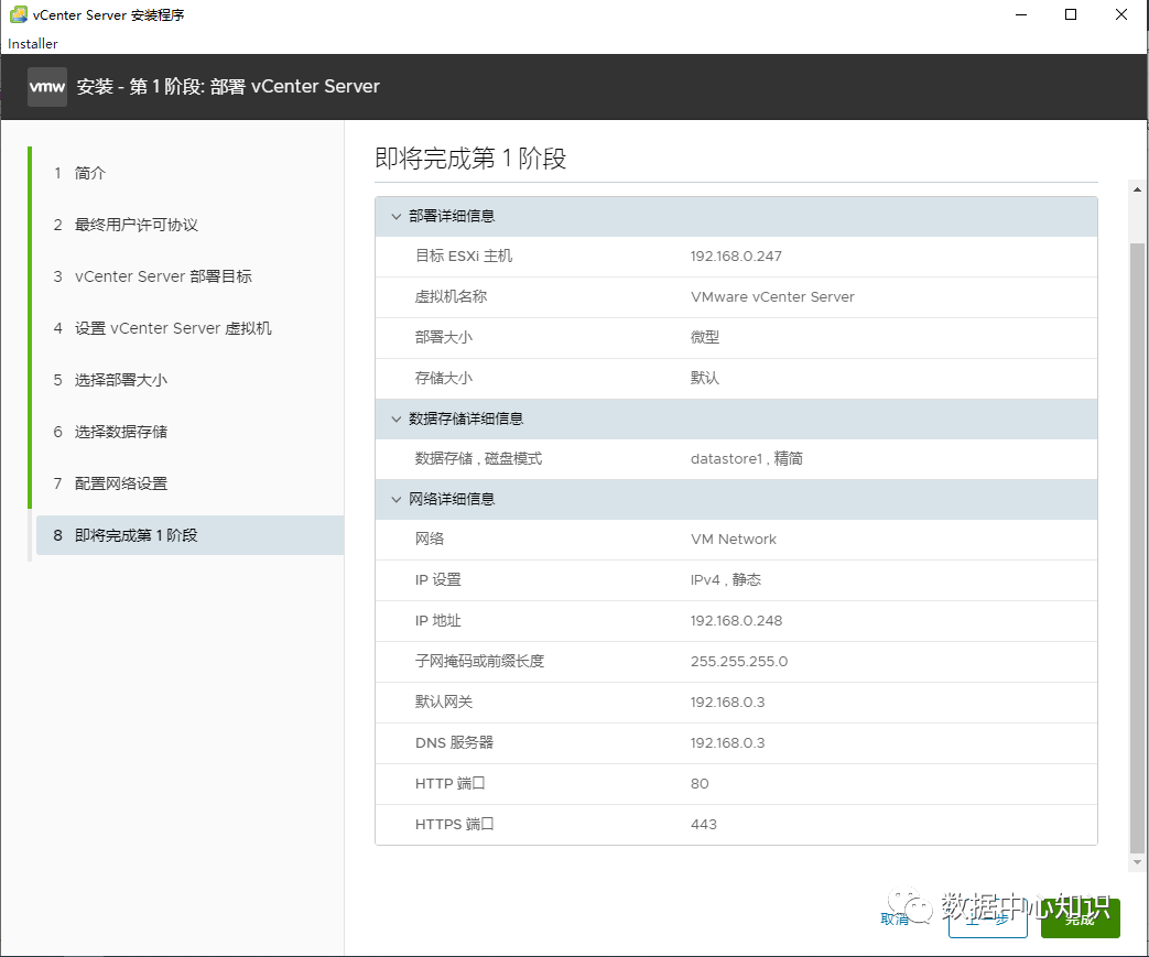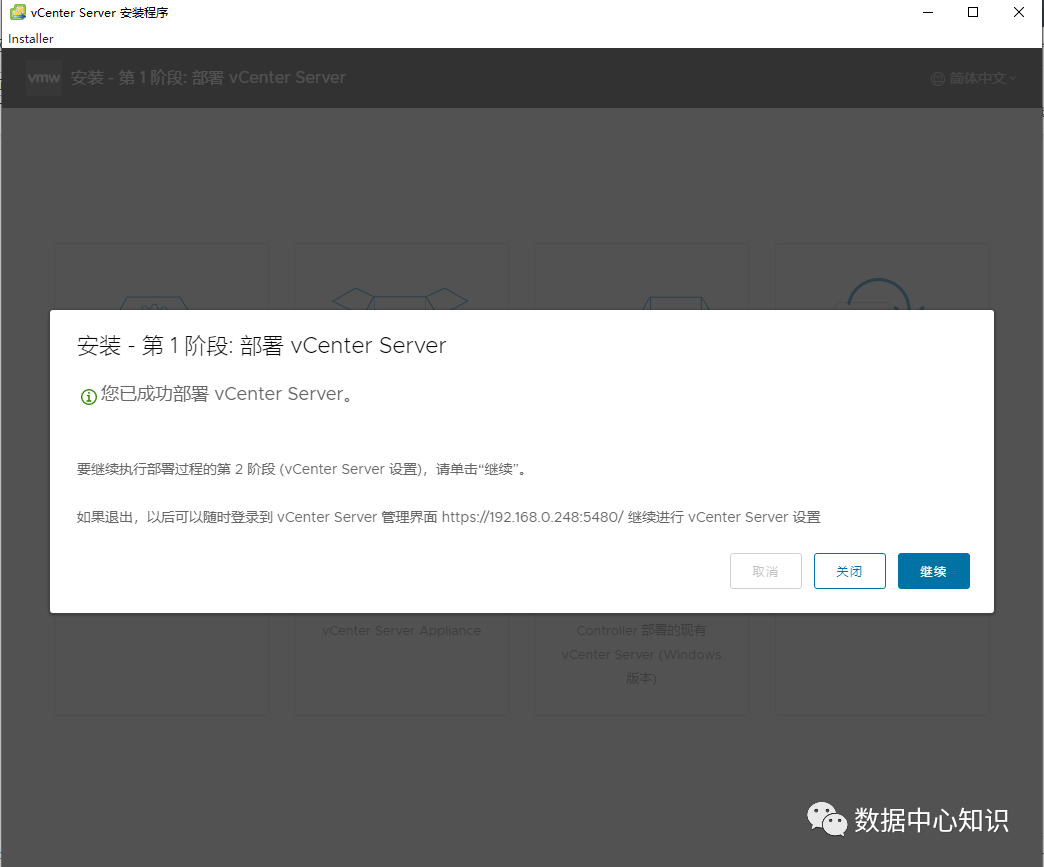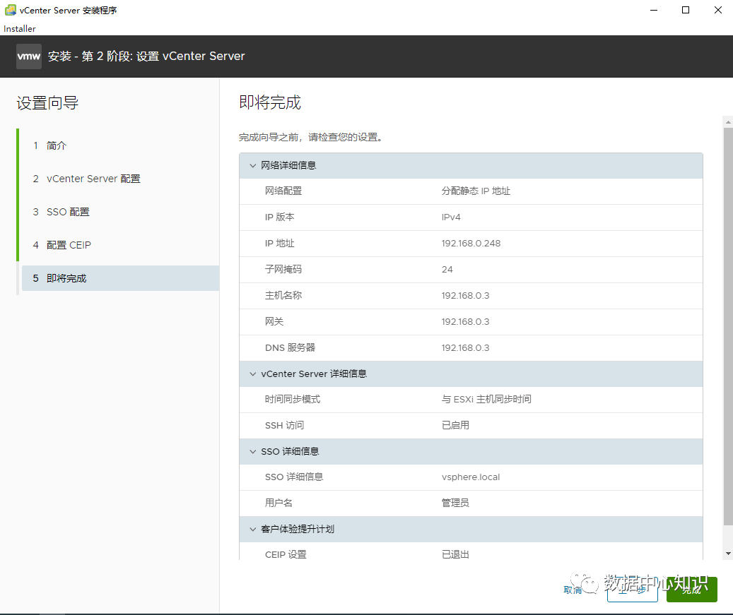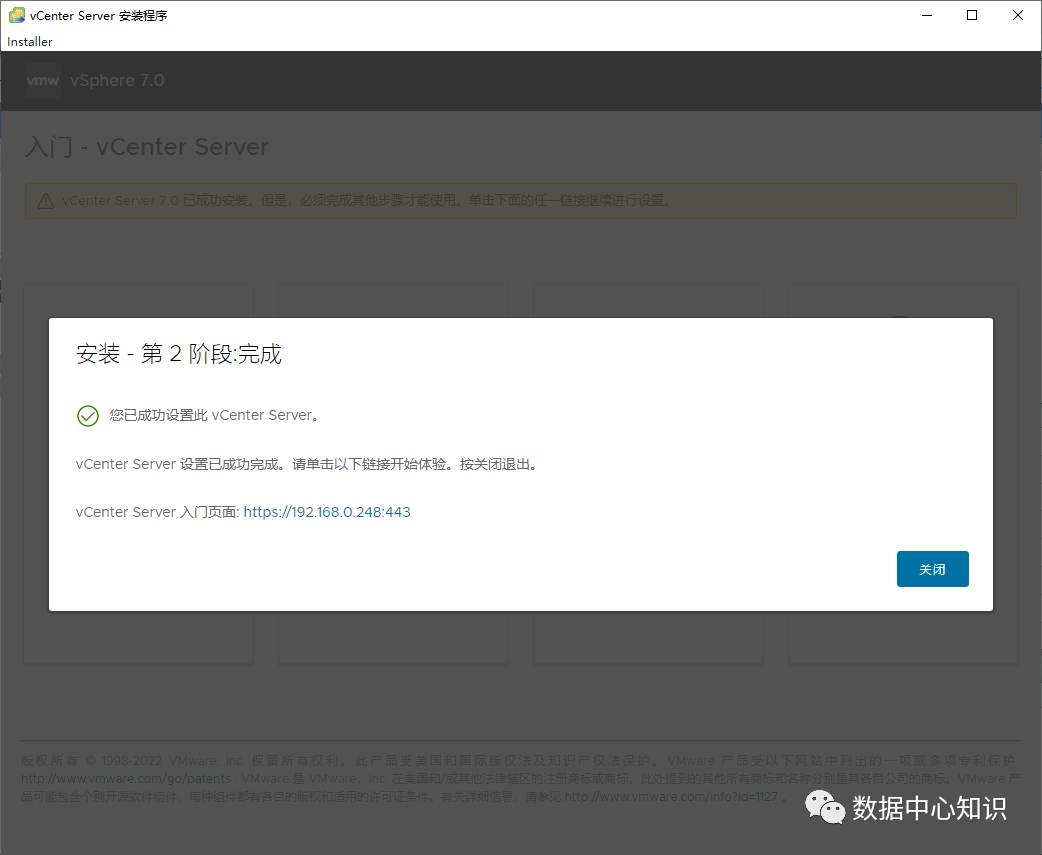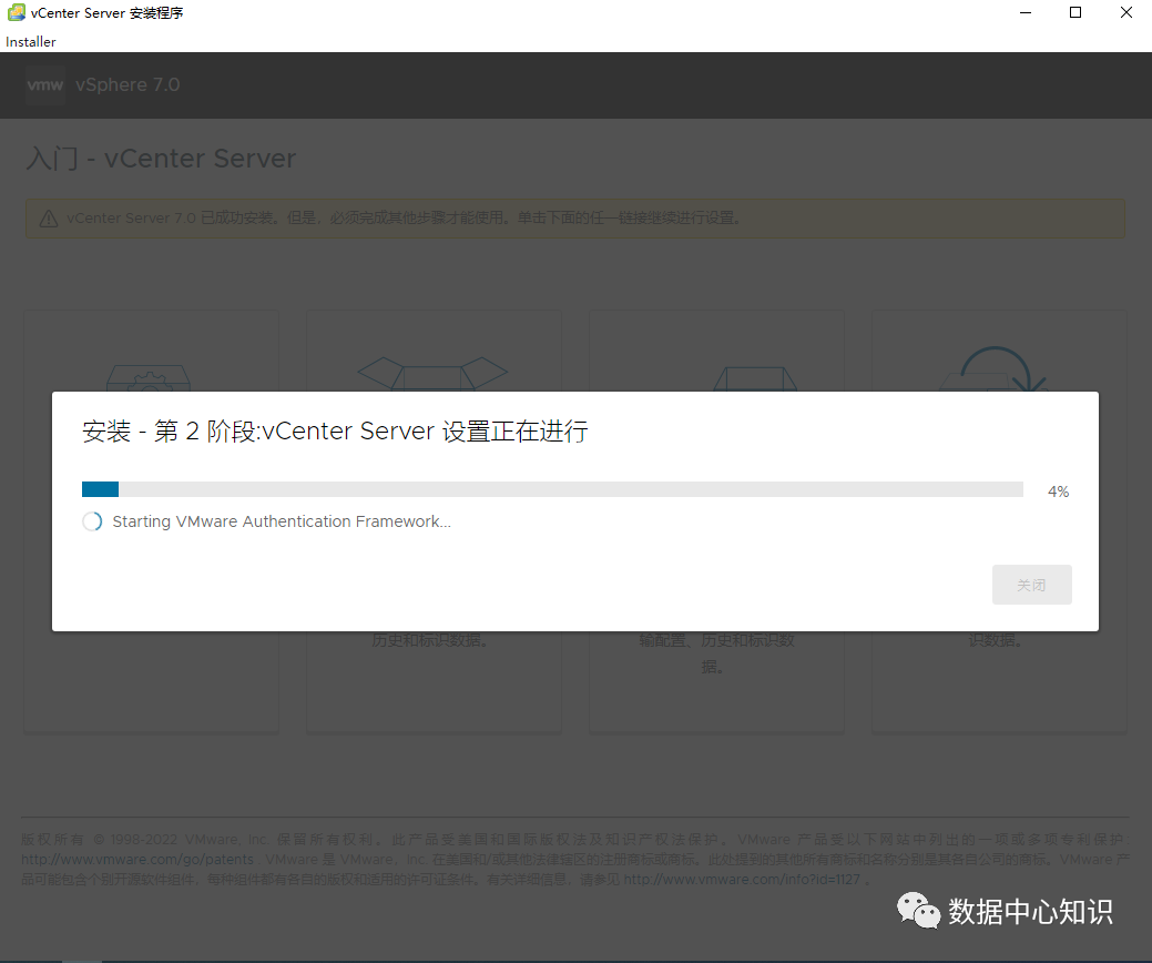 等待进度条走完,vcenter就安装好了。